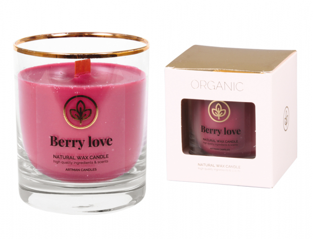 Svíčka z přírodního vosku s vůní ovoce ve skle. Svíčka je v dárkové krabičce. Hmotnost: 500 g. Výška: 9,5 cm, šířka: 8 cm.