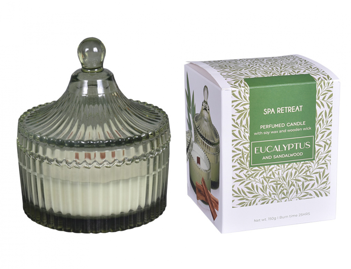 Svíčka ve skle SPA RETREAT EUCALYPT vonná dřevěný knot 1g