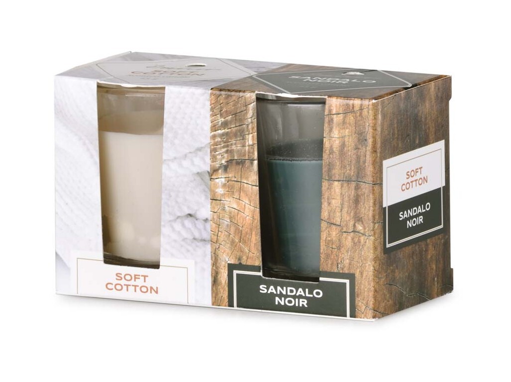 Emocio Sklo 52x65 mm 2 ks v krabičce Soft Cotton & Sandalo Noir, vonná svíčka