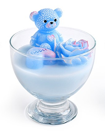 Świeca w pucharku MIŚ woskowa 11x14cm błękitna