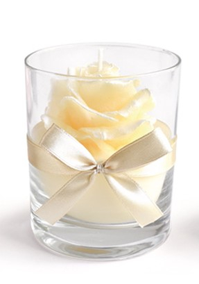 Świeca RÓŻA walec mały 8x9,5cm w szklekremowa woskowa