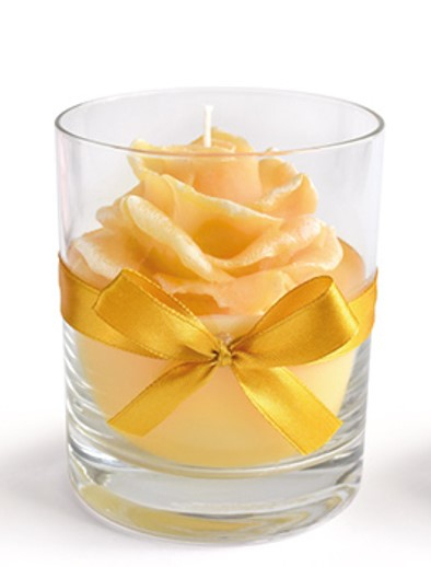 Świeca RÓŻA walec mały 8x9,5cm w szkleżółta woskowa