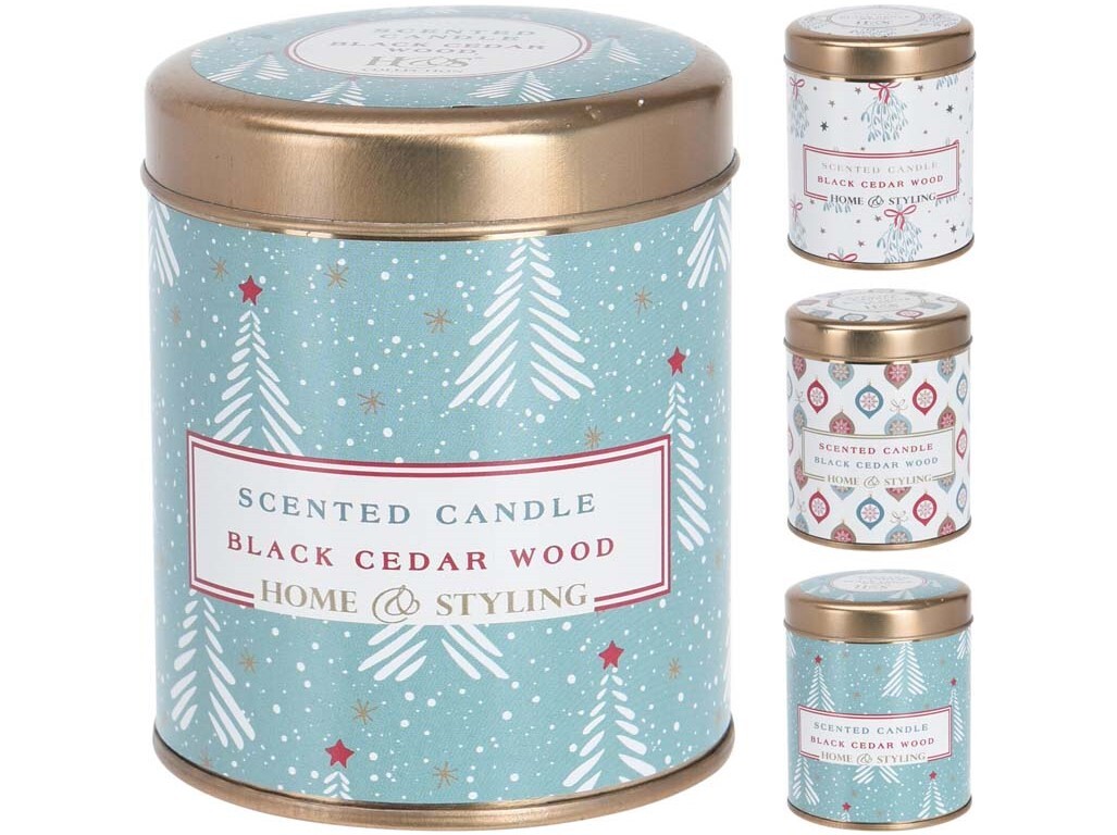 Svíčka v plechu 71x83mm vonná vánoční motivy mix, barevná