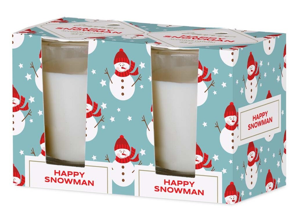 Emocio Sklo 52x65 mm 2ks v krabičce Happy Snowman - Enchanted Sparkle, vonná svíčka