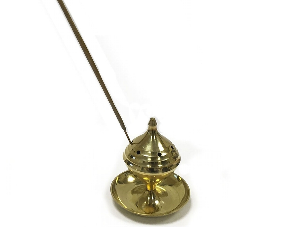 Tradiční indický stojánek - kadidelnice s otvory po obvodu na 5 vonných tyčinek. Průměr: 5,6 cmVýška: 6,5 cm