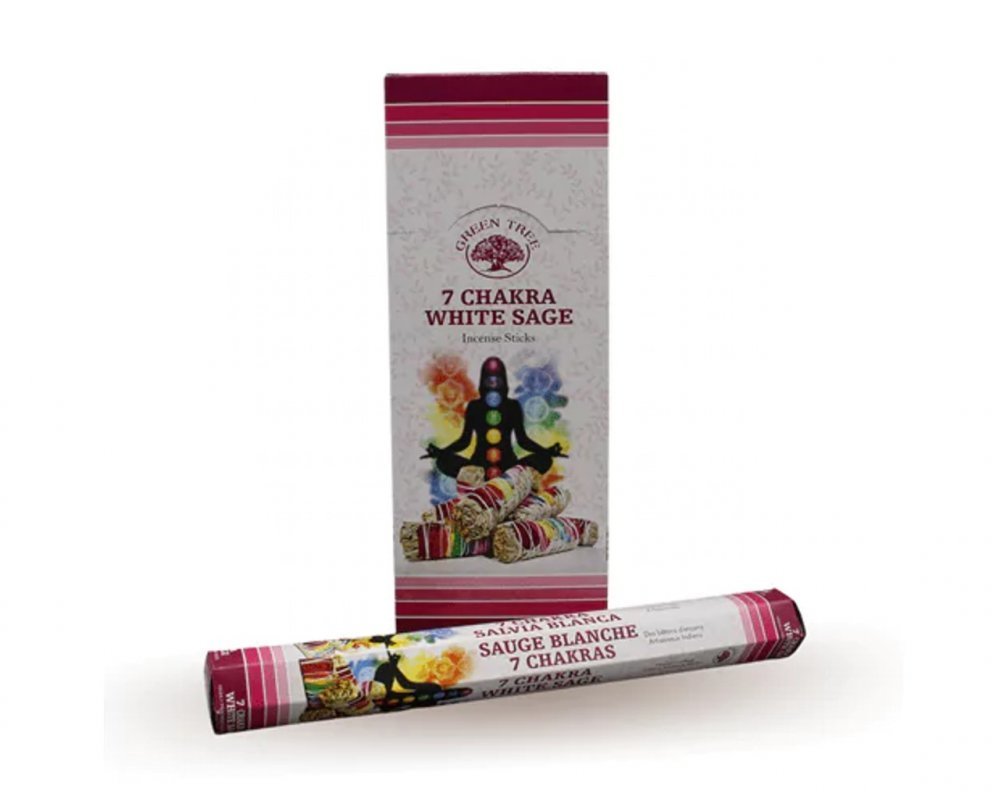Indické vonné tyčinky Green Tree Sedm Čaker- Bílá Šalvěj 15 g