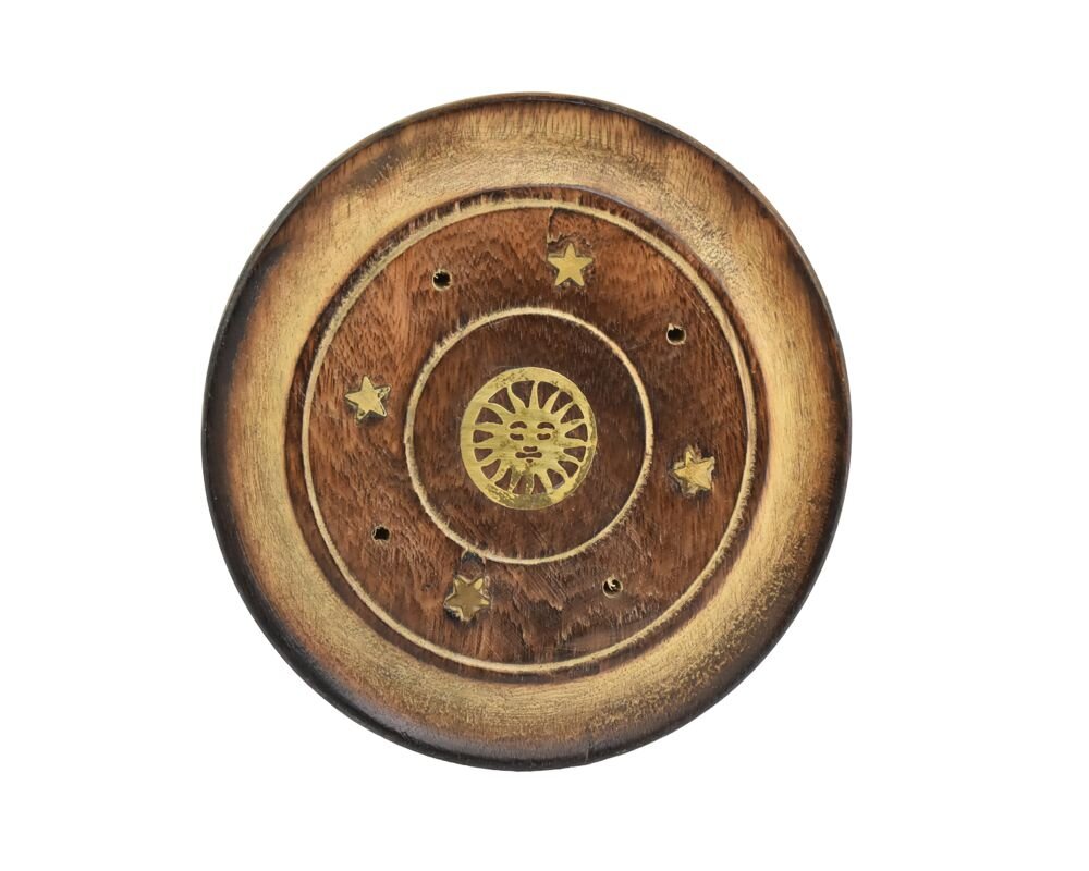 Kulatý stojánek ze dřeva pro vonné tyčinky s bambusovou štěpinou. Zdobený kovovým dekorem.Průměr: 9,5 cm číst celé