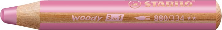 Barevná pastelka "Woody", růžová, 3v1 – pastelka, vodovka, voskovka, STABILO