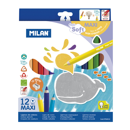 Pastelky MILAN Maxi trojhranné voskové jsou ideální volbou pro všechny děti, které rády malují a tvoří. Díky svému extra měkkému jádru a velké velikosti jsou snadno ovladatelné a přinášejí příjemný zážitek z práce s barvou.