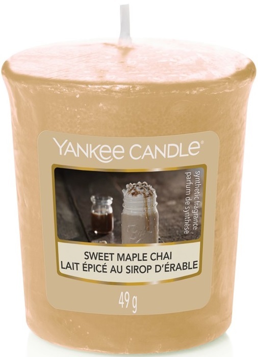 Votivní svíčky Yankee Candle jsou jako stvořené pro tvůrčí přístup k vonění a různým dekorativním kreacím. Samplers votivní svíčky jsou skvělé pro vyzkoušení různých vůní. Pro výrazné provonění doporučujeme použít alespoň 3 votivy v místnosti (například ve svícnu). Palte je ve vhodných kalíšcích či svícnech, roztékají se. Na rozdíl od mnoha jiných značek jsou votivní svíčky Yankee Candle provoněné zcela i uvnitř a nikoli jen namočené nebo potažené. Yankee Candle Sweet Maple Chai (Sladký javorový chai) - přetékající hrnek s teplým mlékem, ochuceným chai kořením a javorovým sirupem - nápoj zamíchaný do krémové dokonalosti. Ideální lahůdka pro chladné dny.