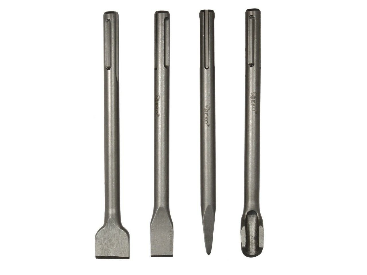 Praktická sada čtyř sekáčů s uchycením SDS MAX. Ploché sekáče disponují rozměry 20 a 30 mm.