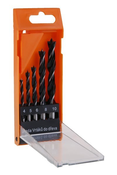 Sada nejpoužívanějších vrtáků 4, 5, 6, 8, 10 mm do dřeva, použití : pro běžné dílenské a kutilské použití, vrtání do dřeva, drřevotřísky, OSB panelů..., balení - folie. číst celé