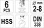 Sada 6 ks vrtáků z rychlořezné oceli se zesíleným břitem a špičkami s ůhlem 118°.