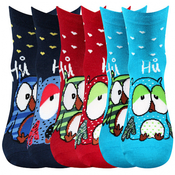 Ponožky dámské Boma Xantipa 43 Sovičky 3 páry (navy, modré, červené), 39-42