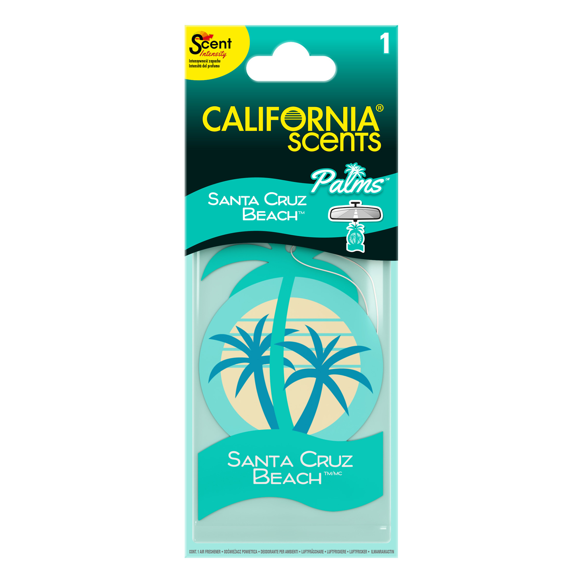 Závesná papierová vôňa - palma California Scents Palm Santa Cruz Beach s osviežujúcou vôňou, ktorá prevonia interiér vozidla, bytu, kancelárie či skrine.
