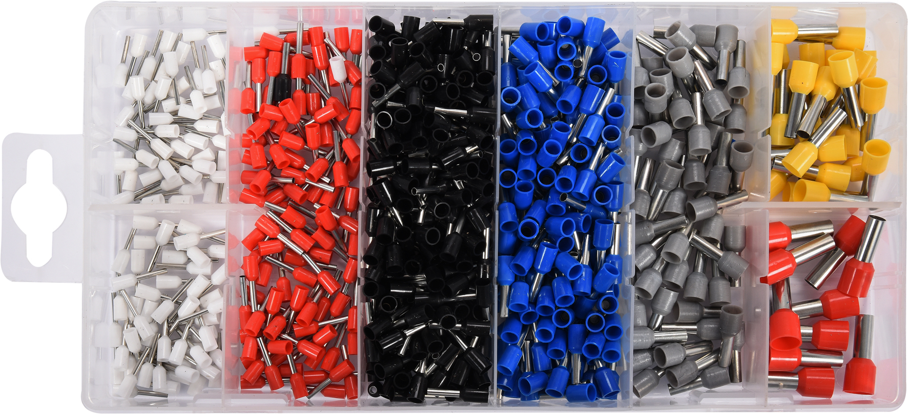 Sada 685 ks izolovaných kabelových koncovek určených ke krimpování.