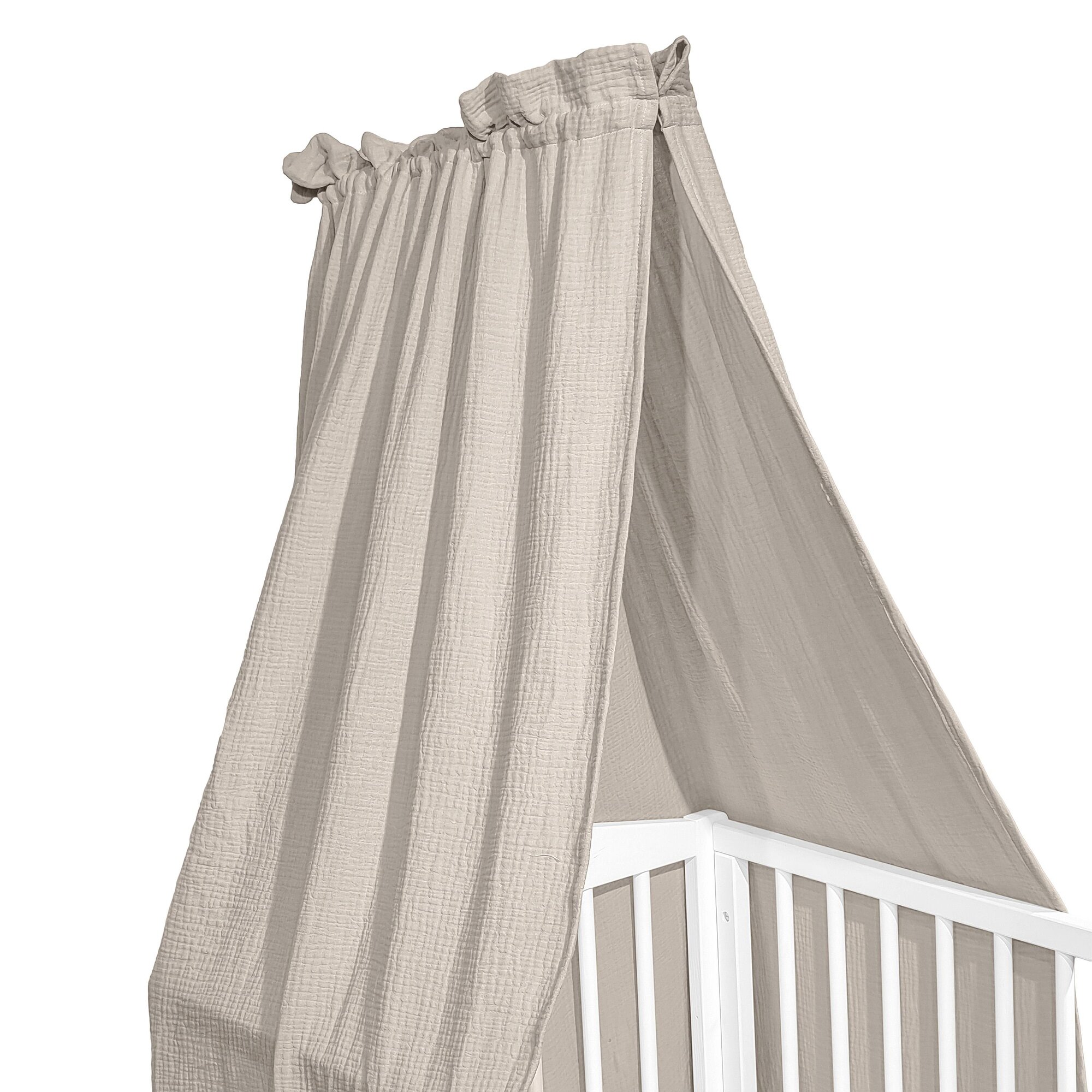 Baldachim do łóżeczka wykonany z jednokolorowego muślinu bawełnianego to idealny dodatek do pokoju każdego malucha. Ten lekki i przewiewny materiał zapewni komfortowy sen oraz tworzy przytulne i magiczne otoczenie w pokoju dziecka.