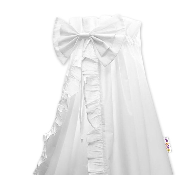Bavlněná nebesa s volánkem a mašlí zaručeně ozdobí každou dětskou postýlku nebo kolébku.