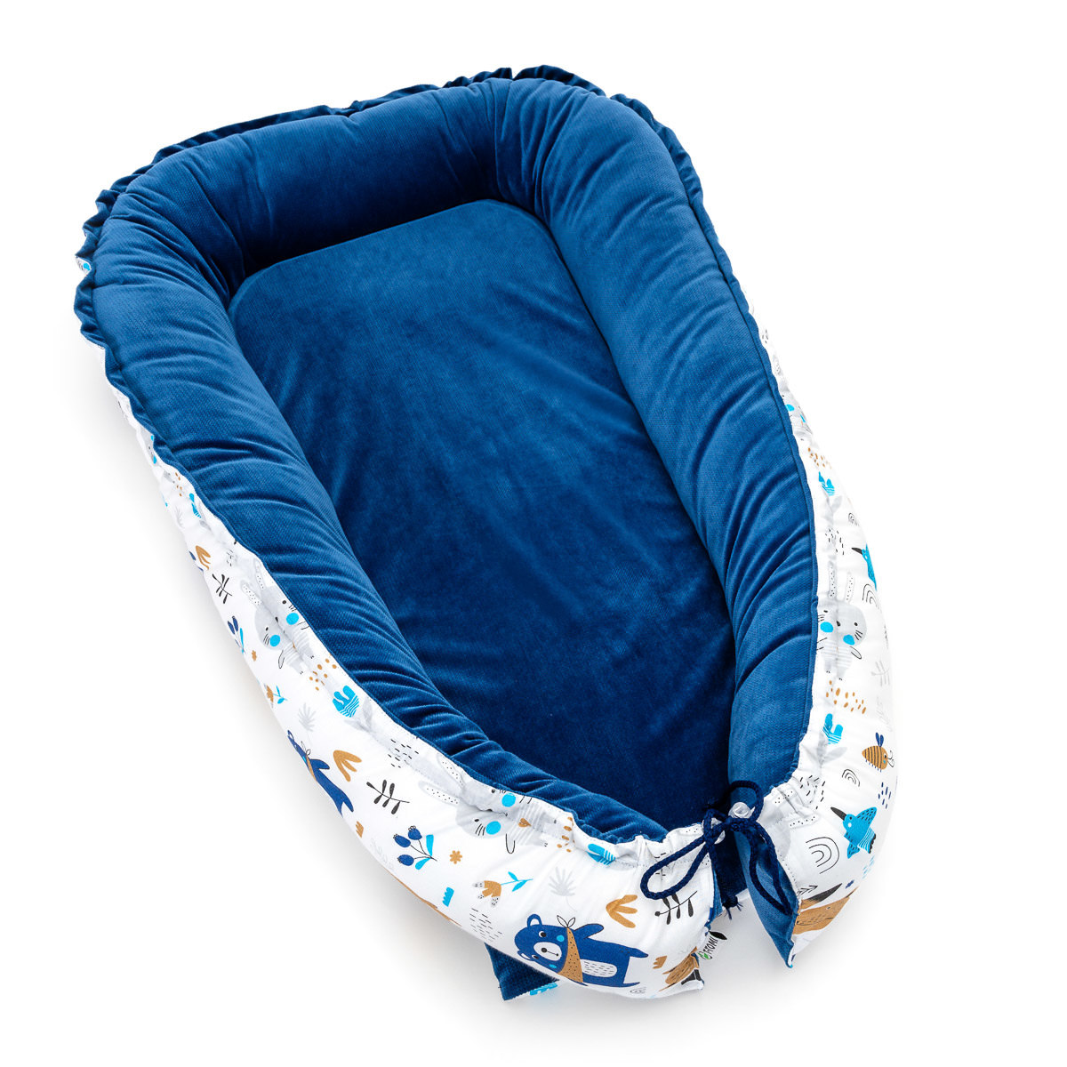 Dětské hnízdečko pro miminko T-TOMI vyrobené z jedné strany ze 100% bavlny a z druhé strany z jemného, hřejivého a luxusního materiálu VELVET. Toto inovativní vzájemné spojení tvoří originální výrobek, který budou Vaše miminka milovat. Výplň hnízdečka tvoří kvalitní antialergické PES kuličky (duté vlákno). Ležící plocha je vyplněna kvalitní PUR pěnou. Můžete ho použít oboustranně a vybrat si hřejivější VELVET nebo jemnou bavlnu. Hnízdečko je baleno v praktickém obalu se stahováním vhodném nejen pro skladování, ale i na cesty a další využití.
