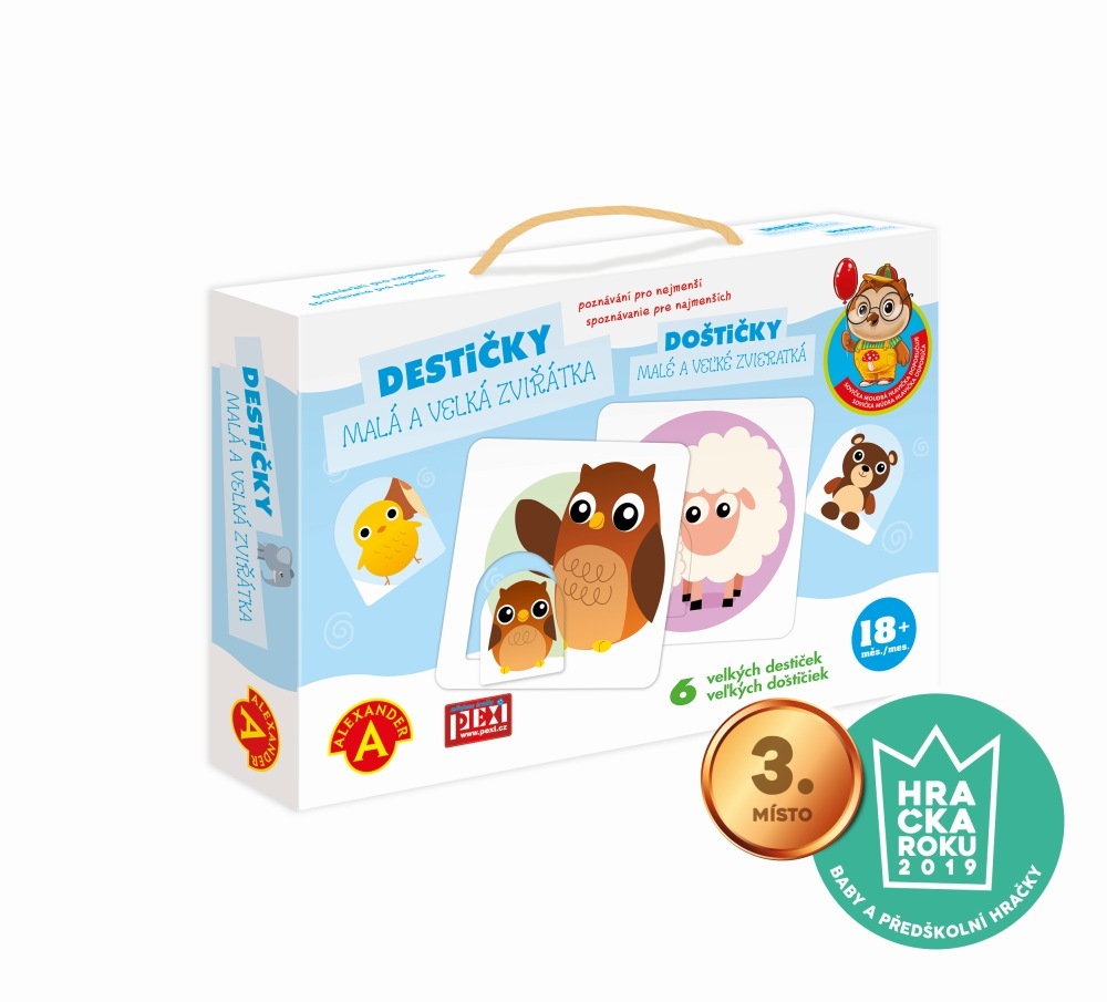 - Sada obsahuje několik destiček se zvířátky ve dvou velikostech - malá a velká.