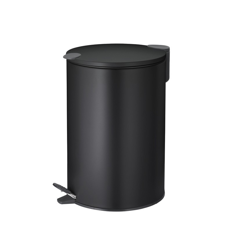 Podložky do pedálů 12 L z kovu v černé barvě - tichý způsob, jak se postarat o odpad. Díky systému tichého zavírání si zavírání víka nevšimnete. Nášlapný koš Mats zaujme pouze svým moderním vzhledem. Protože je pedálový koš vybaven i protiskluzovou základnou, nemusíte se při používání bát o stabilitu.Kovový práškový lak matný Silent Close 12L, 25cm , 38cm v