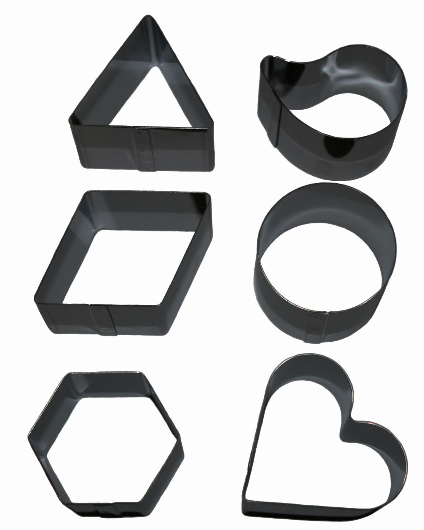 Sada vykrajovátek na mini dortíky semifredda v různých tvarech - 6 kusů v balení. Vykrajovátka jsou vhodná do myčky nádobí. Materiál - nerez. Rozměry - trojúhelník 5x5x5 cm, slza 5,3x3,7 cm, kosočtverec 7x5 cm, kolečko - průměr 4,7 cm, šestiúhelník 4,9x4,9 cm, srdce 5,6x5,5 cm, hloubka formiček 4...