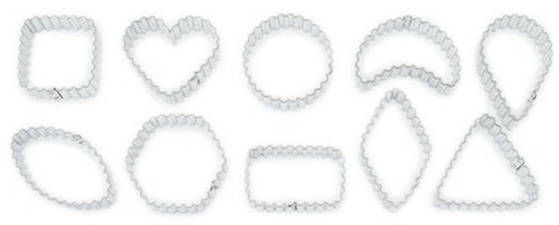 Zoubkované vykrajovátko na mini keksy. Materiál - pocínovaný plech. Rozměry - 2x3 cm, hloubka 1,6 cm. číst celé