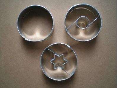 Sada vykrajovátek 3 ks - tvar kolečka hladká. Vhodné na cukroví, perníčky, potahové nebo modelovací hmoty. Vykrajovátka jsou od českého výrobce a splňují všechny předepsané normy, vyrobeno z pocínovaného plechu. Obsah balení: 1x kolečko plné, 1x kolečko s kulatým středem, 1x kolečko s...