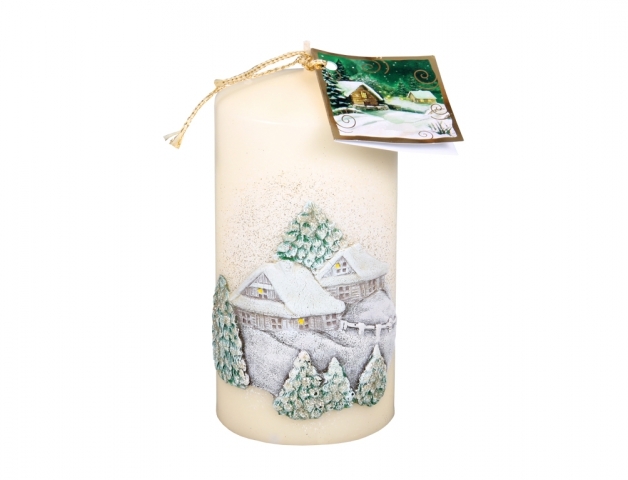Svíčka CHALOUPKA VÁLEC vánoční d7x14cm