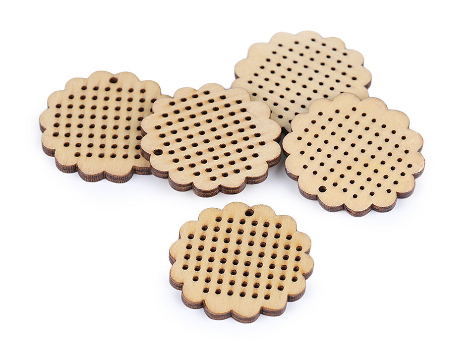 Dřevěný výsek k vyšívání Ø45 mm květ, srdce - 20 ks - 1 přírodní květ