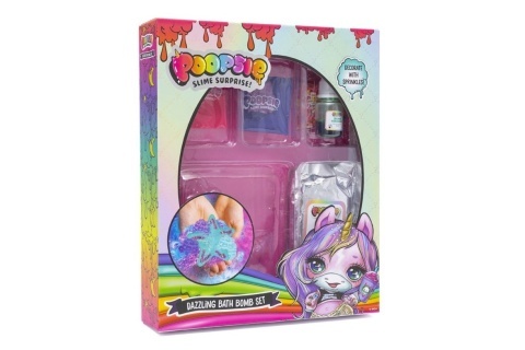 Poopsie sada na výrobu bomb do vany obsahuje sodu, kyselinu citrónovou, aroma, 2 barviva, třpytky, formičky, rukavice a český návod. Rozměry balení cca 18 x 22 x 4 cm. Věk 3+ číst celé