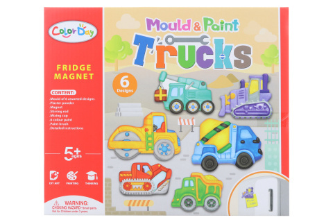 Balení obsahuje vše, co potřebujete k výrobě magnetů: sádru, plastovou misku, formu se 6 různými motivy stavebních aut, 6 barevných barviček, štěteček, magnety a podrobný návod na přípravu. Díky tomu mohou děti snadno a bezpečně vytvořit krásné magnety podle svých představ. Rozměry balení jsou přátelské pro domácí kreativní dílničku (cca 27 x 23 x 5,5 cm), což celé sady umožňuje pohodlné uskladnění.