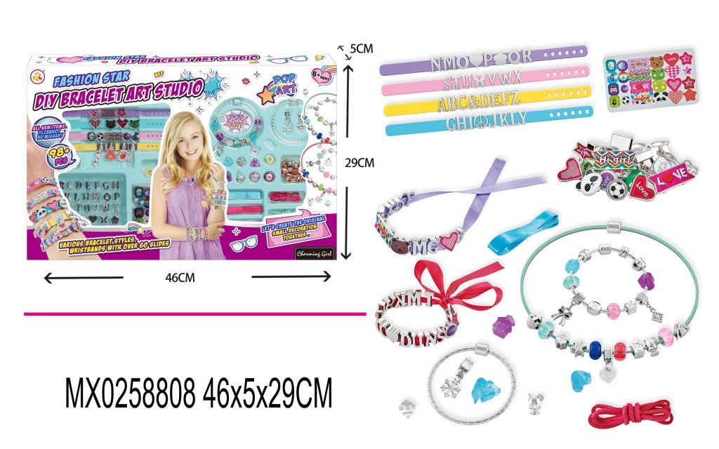 Různé styly náramků. Pojďme spolu vytvořit malou originální dekoraci. Vytvoř si vlastní personalizované šperky. Navrhni si vlastní náramky přátelství. 1. Otevři sponku na náramku. 2. Navlečte své oblíbené doplňky. 3. Provleč šňůrku přes ozdobu.
