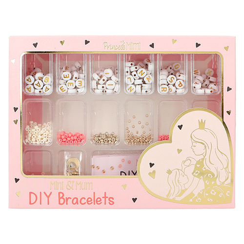 Vytvořte si vlastní náramky s motivy značky Princess Mimi. Sada obsahuje korálky různých barev ve dvou velikostech, přívěsky srdíček a 207 korálku s písmenky. Náramky můžete vytvořit až s 2 metry dlouhou gumou. Vytvořte náramek jak pro maminku tak pro malou princeznu.Ideální dárek pro každou kreativní krásku! Vhodné pro děti od 5 let.