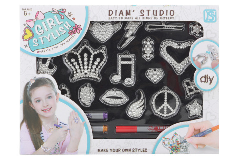 Sada na výrobu šperků. Balení obsahuje 20 druhů šperků a 5 barevných fix. Rozměry balení cca 26 x 19,5 x 4 cm. Věk 6+