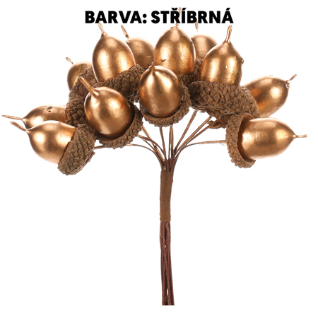 Žaludy na drátku - umělé, barva stříbrná, cena za 1 box (72 ks).