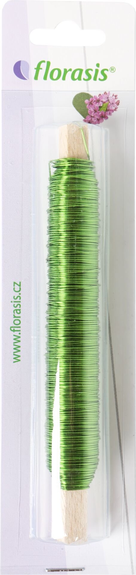 Měděný lakovaný drát na aranžování květin a výrobu věnců na dřevěném kolíku, váha 100 g.