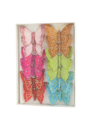Motýl s klipem, s glitry, cena za 12 kusů v krabičce