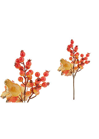 Větvička podzimní s jeřabinou a dýní, umělá dekorace