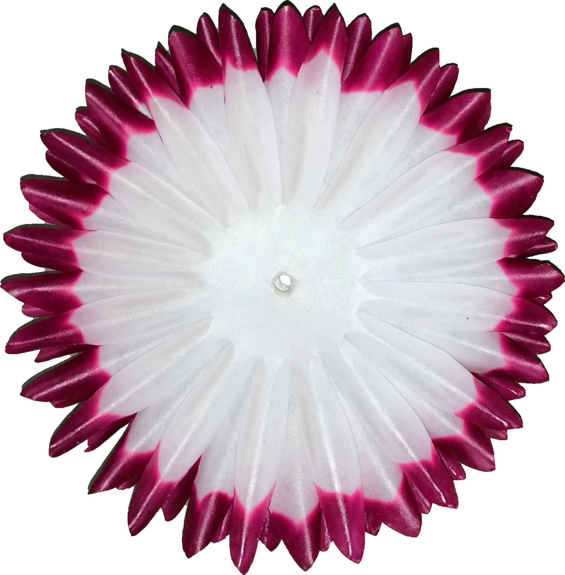 Samostatný lístek z voskovaného papíru pro výrobu květů na smuteční věnce a kytice. Barva: bílá, bordó špičky Rozměr: 13 cm