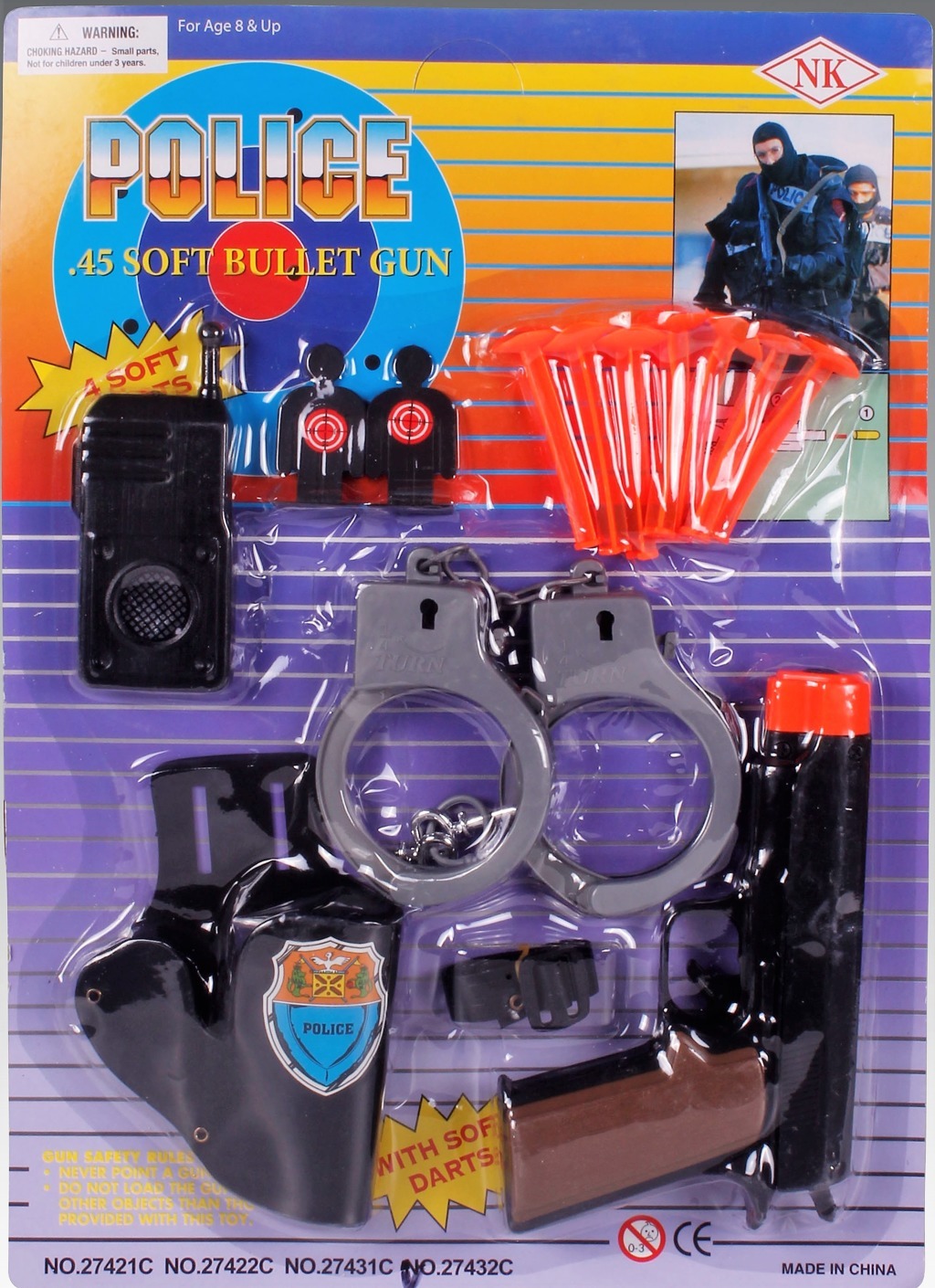 Policejní sada obsahuje vysílačku, pistolku s šipkami a poudrem, pouta. číst celé