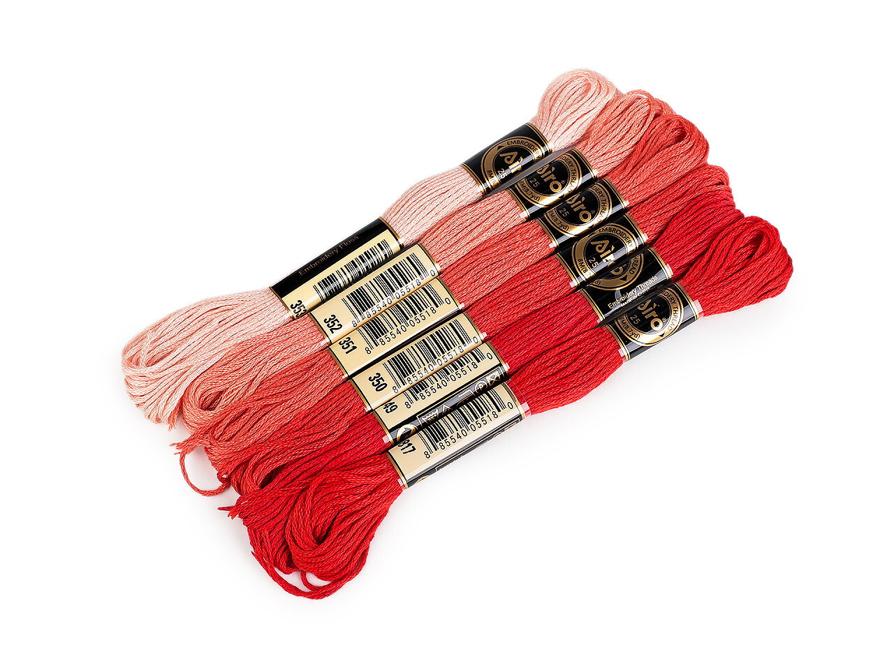 Příze vyšívací typ mouline AIRO sada odstínů 6 ks/8 m - 6 ks - 4 červená