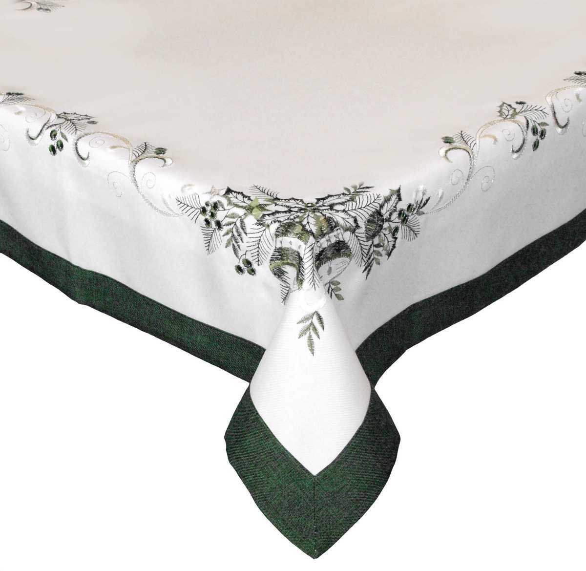 Atraktivní Vánoční ubrus s nádhernou výšivkou vytvoří příjemnou sváteční atmosféru. Velice elegantní vzhled přidává zelený lem.