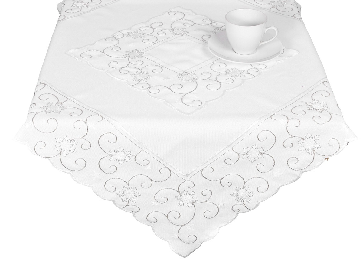 Ubrus Vánoční, Stříbrný ornament a vločky, bílý 120 x 140cm