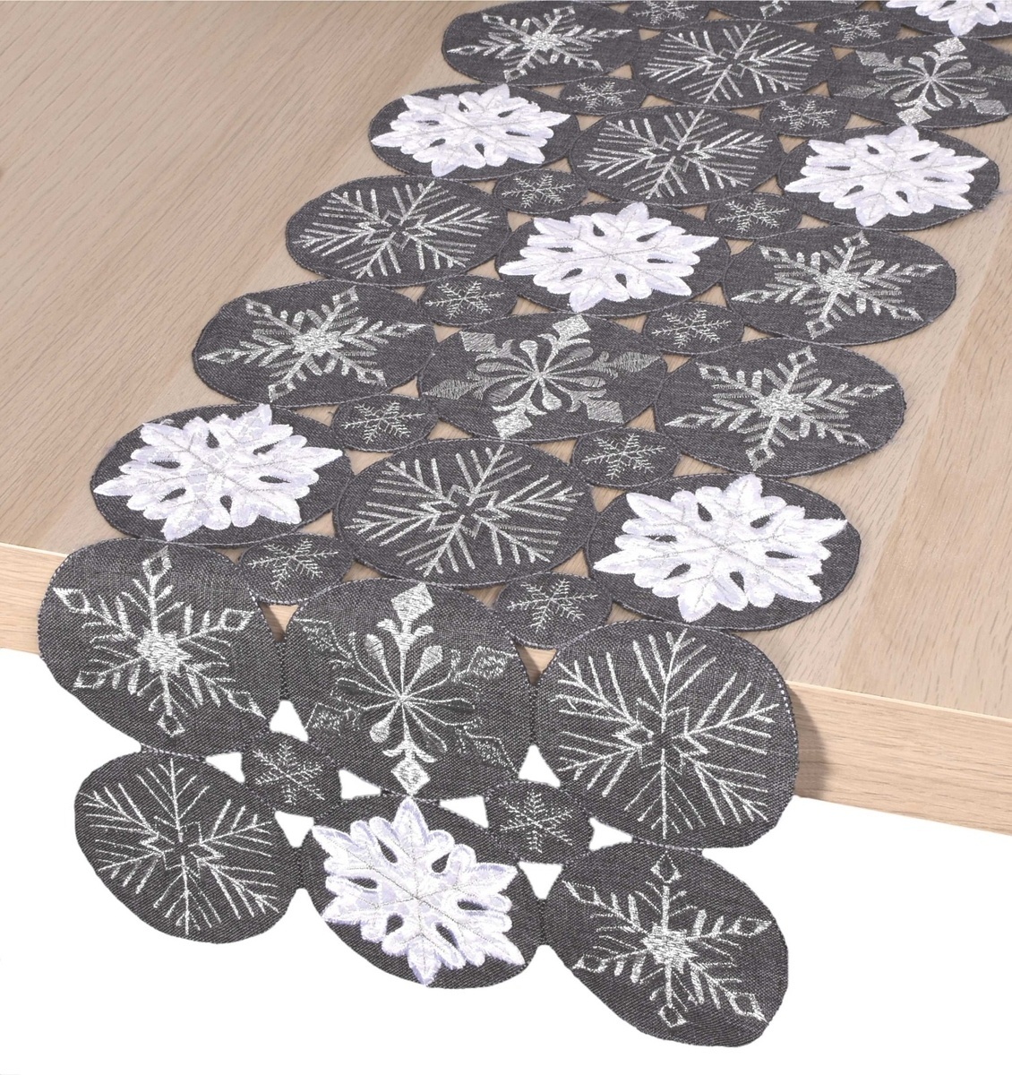 Ubrus Vánoční, Stříbrné a bílé vločky, šedý, 30 x 85 cm 30 x 85 cm
