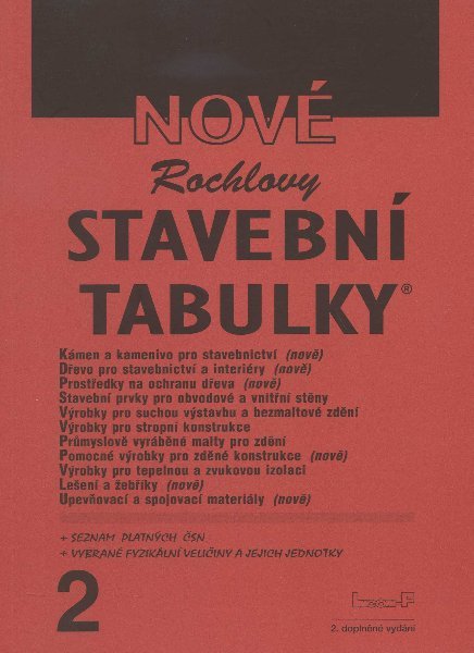 Druhý díl tabulek pro stavební prvky pro obvodové a vnitřní stěny, výrobky pro stropní konstrukce, průmyslově vyráběné malty pro zdění, výrobky pro tepelnou a zvukovou izolaci.