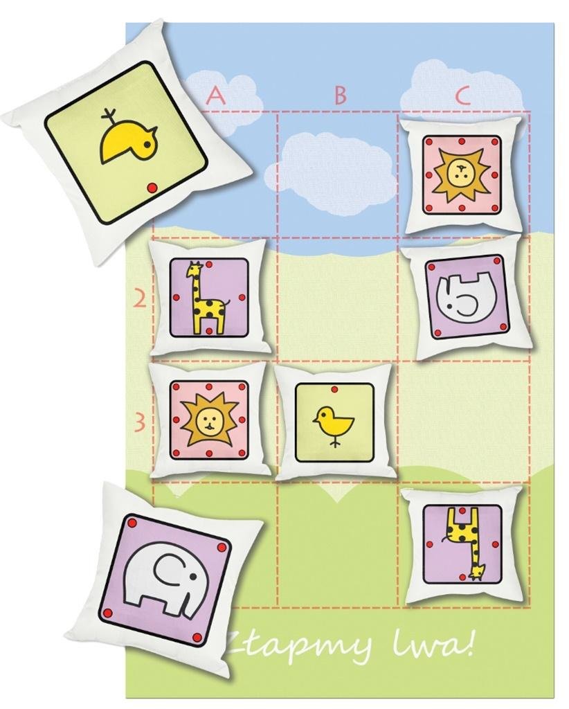 Poduszki ze ślicznymi rysunkami zwierząt i kolorową planszą zamienią każdą grę w miłą i twórczą zabawę.