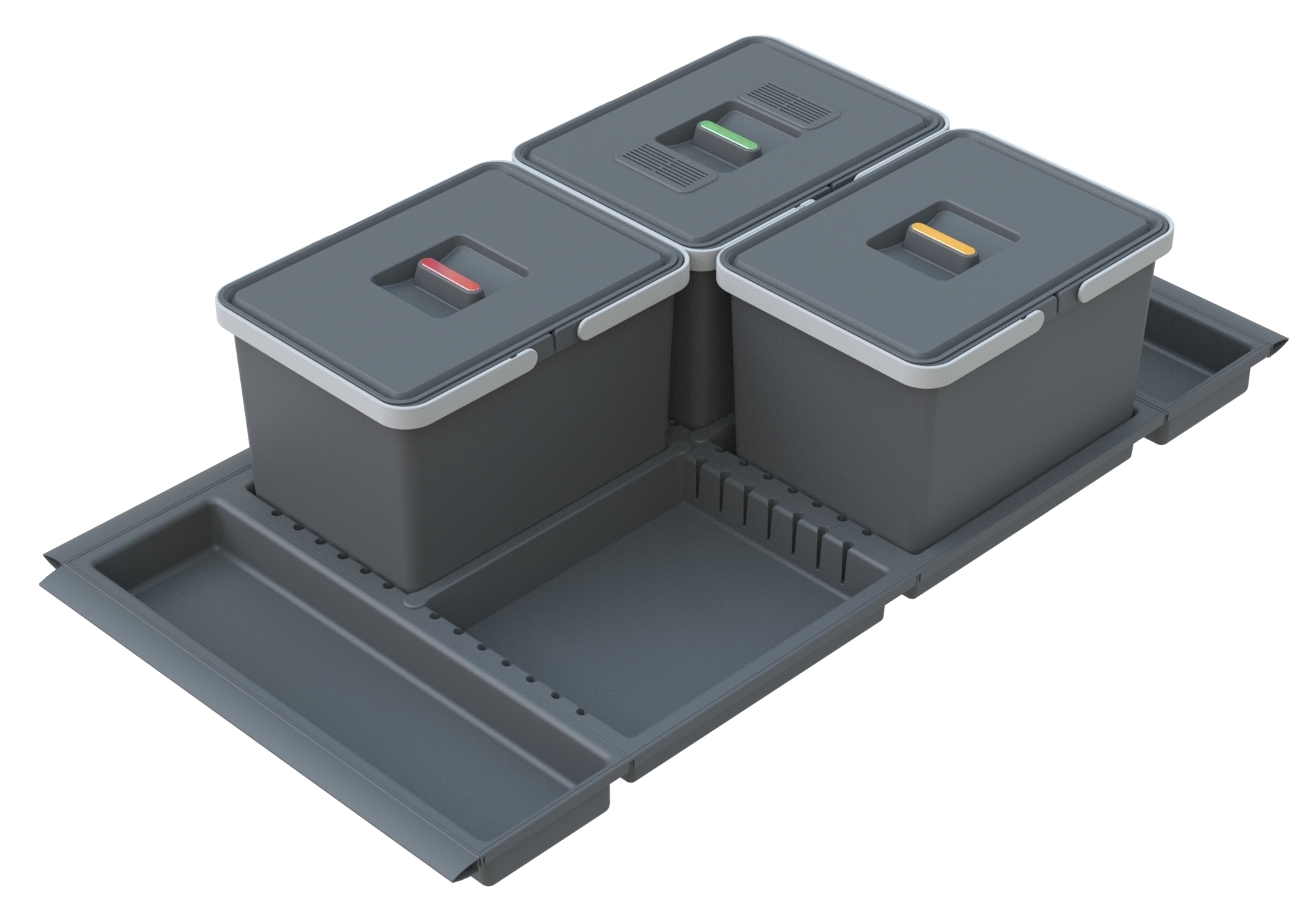 Vestavný odpadkový koš Elletipi METROPOLIS - výsuvný, 12+12+12 L, PTC22 10050 7F