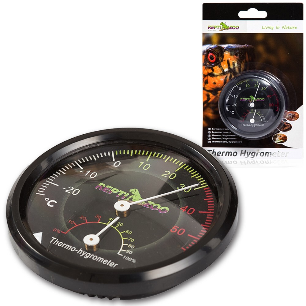 Tento spolehlivý analogový měřič kombinuje teploměr a vlhkoměr v jednom zařízení. Díky přesnému kovovému čipu získáte spolehlivá data o prostředí ve vašem teráriu. Praktická samolepící páska na zadní straně umožňuje snadné a bezpečné připevnění na bok terária bez nutnosti použití nářadí nebo speciálních úchytů.