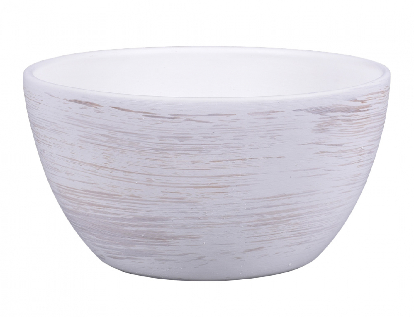 Keramický obal na květník v matném provedení. Má zaoblený tvar misky. Neutrální barvy a nenápadný design tvoří výbornou kombinaci pro útulný prostor. Vyroben ze speciálního bílého jílu, s vysokým obsahem kaolinu. Je velmi odolný a pevný. Vhodný do interiéru. Rozměry: průměr 20 cm, výška 12 cm. Váha: 1,3 kg. Objem: 2 l. Barva: béžovobílá.